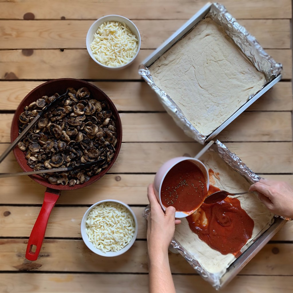 - Te recomiendo agregar el queso y los champiñones en capas. Quedan mejor distribuidos los ingredientes.