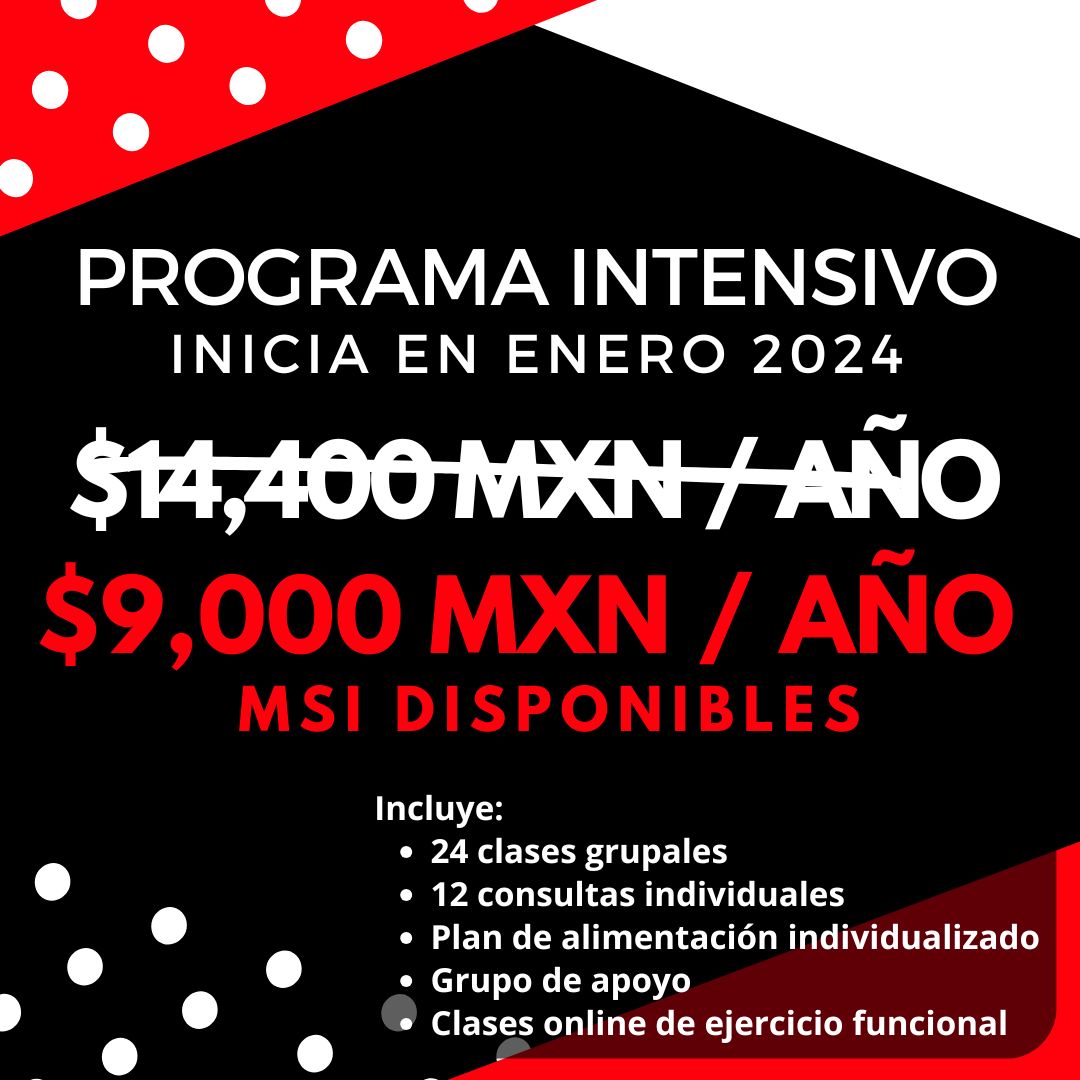 ✨ Inscríbete al programa intensivo de cambio de estilo de vida, y recibe un gran descuento. Lo mejor de todo: este descuento se mantiene durante todo el tratamiento, siempre y cuando sigas constante a lo largo del año.